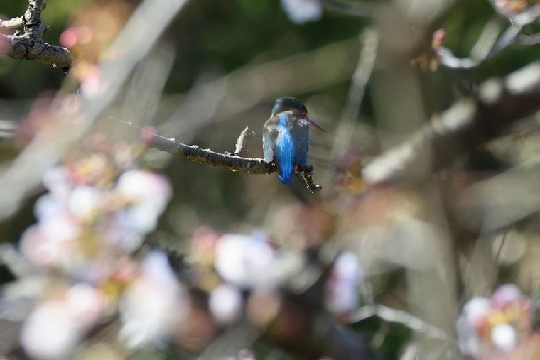 カワセミが桜の枝に止まるのを狙っていたのですが、こんな写真しか撮れませんでした。