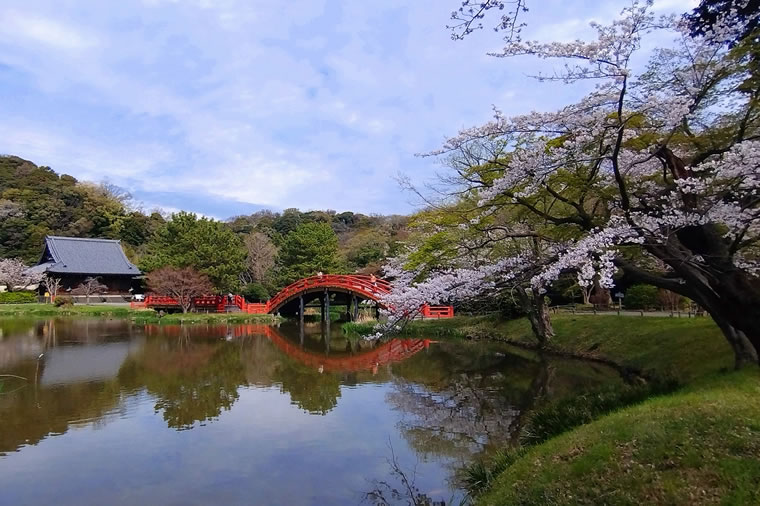 このお寺は、朱色の初と桜の取り合わせが美しいので、カップル、モデル、結婚式の前撮り撮影などのため、一眼レフを手にしたカメラマンが着物姿の女性を撮っているところを多く見かけました。