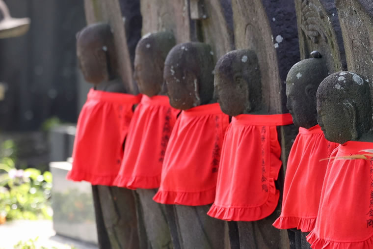 赤い前掛けを付けたお地蔵様はお地蔵様の中でも子供を守ってほしい、という願いが込められているのだそうです。