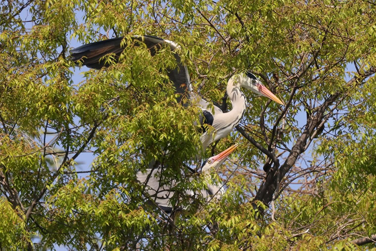 釣鐘水仙が咲いている観察窓の近くで、アオサギが営巣しています。