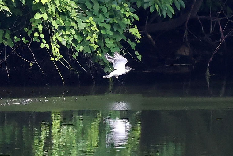 ヤマセミは、体長は約38cm、翼開長は約67cm。カワセミの倍、ハトほどの大きさで、日本でみられるカワセミ科の鳥では最大の種類です。