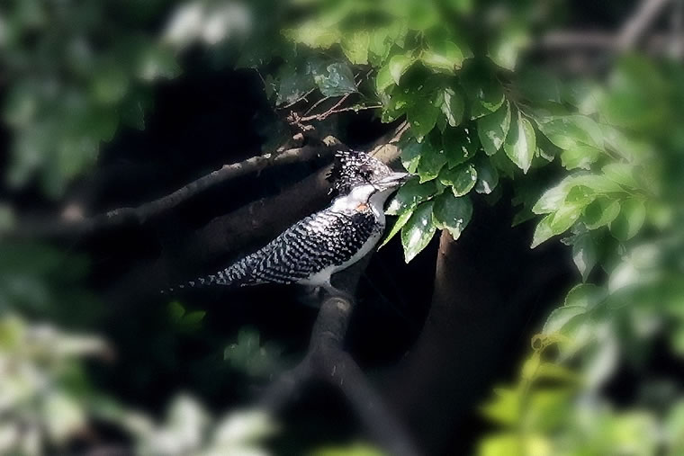 ヤマセミは、頭の大きな冠羽が特徴です。貫禄を感じます。