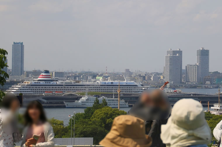 同じく港の見える丘公園展望台から見た、横浜港大さん橋です。