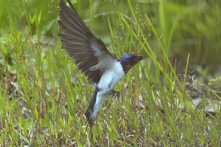 水田のような小さな池ですが、初夏にツバメが飛来してくると、巣作りのために、ドロと枯れ枝を咥えて運んでいきます。