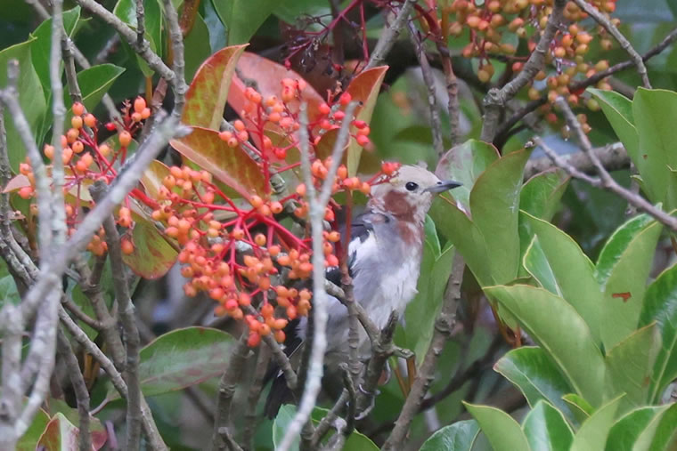 サンゴジュの熟した実を目当てに、早朝から姿を見せてくれました。