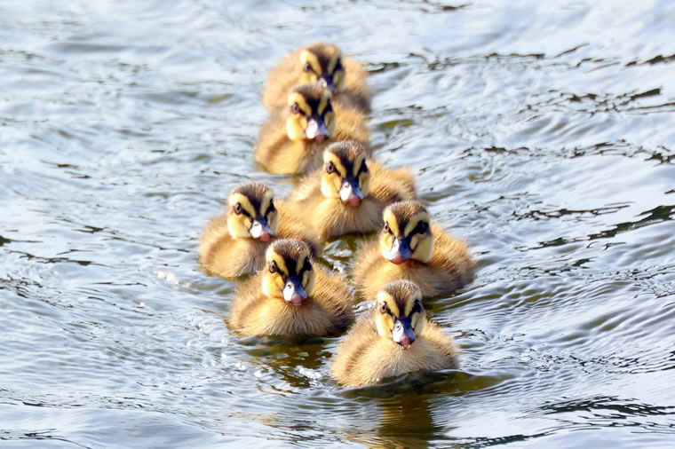 7羽の雛たちが、こちらに向かって泳いできてくれました。