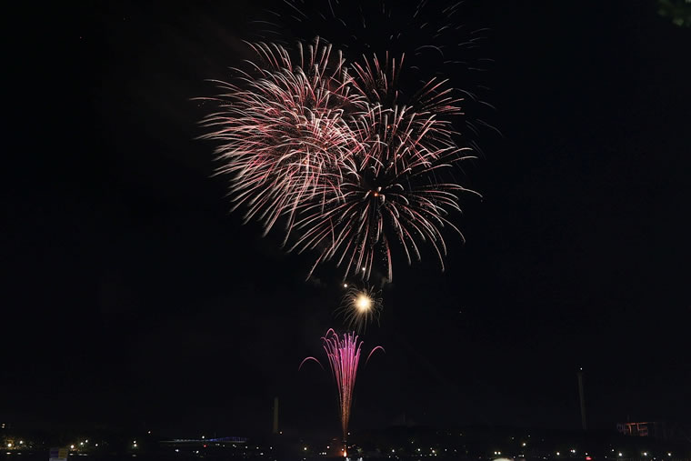 花火の収まり具合で、本当は縦長の写真にしたいのですが、このブログへの掲載の関係で、横長の写真にしました。