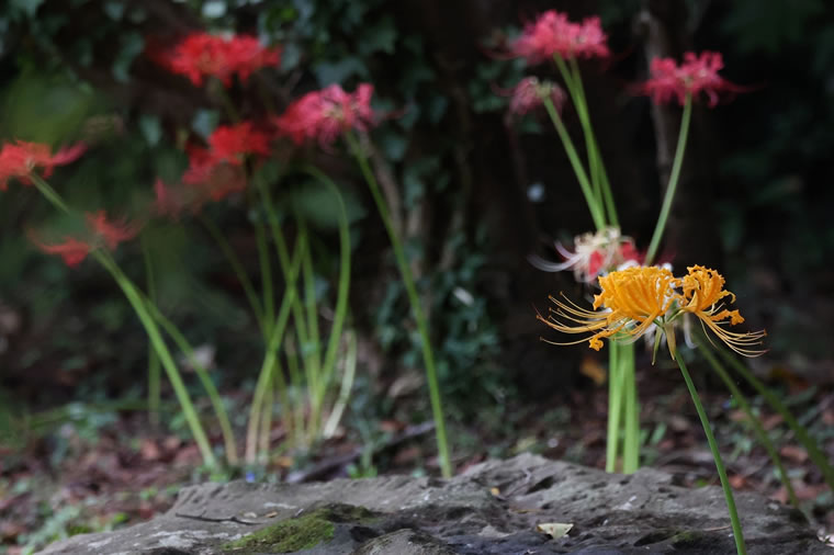 季節の花を1枚。 別名、彼岸花。黄色、白、朱が咲いていました。