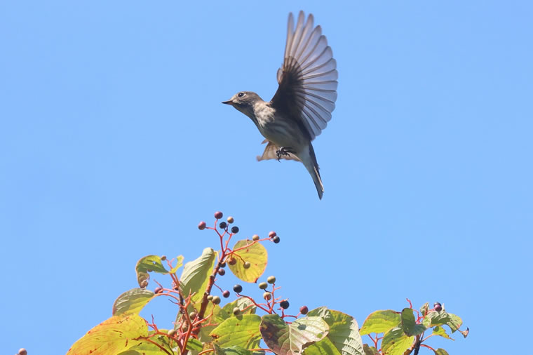 昆虫以外に、ミズキの実も食べます。