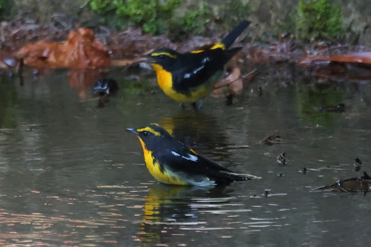 キビオス2羽が一緒に水浴びしている珍しいシーンです。