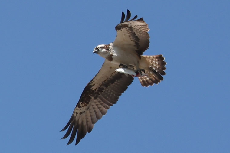 思いがけず上空を通過しているミサゴを見つけシャッターを押したら、魚を抱えていました。