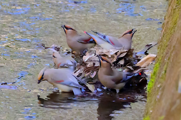 ヤドリギの実を沢山食べると、川に水飲みに降りてきました。