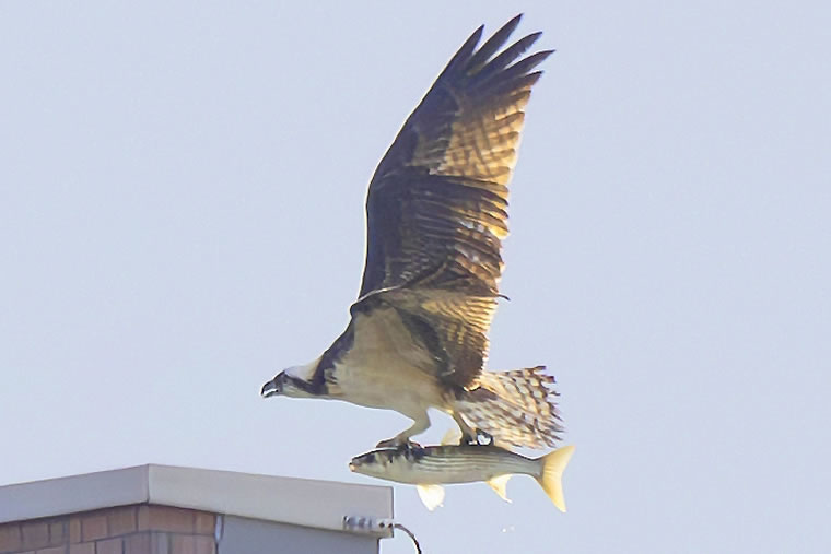 大きな魚(ボラ)を両足でしっかり掴んでいます。