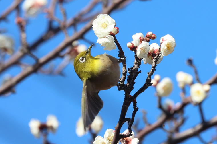 今回のウメジロー写真は、先週末の1/12(金)~1/13(土)に撮ったものなので、ここの梅の開花は昨年より1ヶ月以上早いと分かりました。