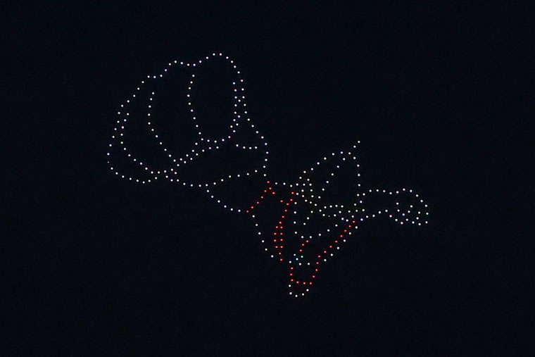各日は3部構成で、1000機のドローンが、ウルトラマン、鬼滅の刃などのシーンを夜空に描いてくれます。