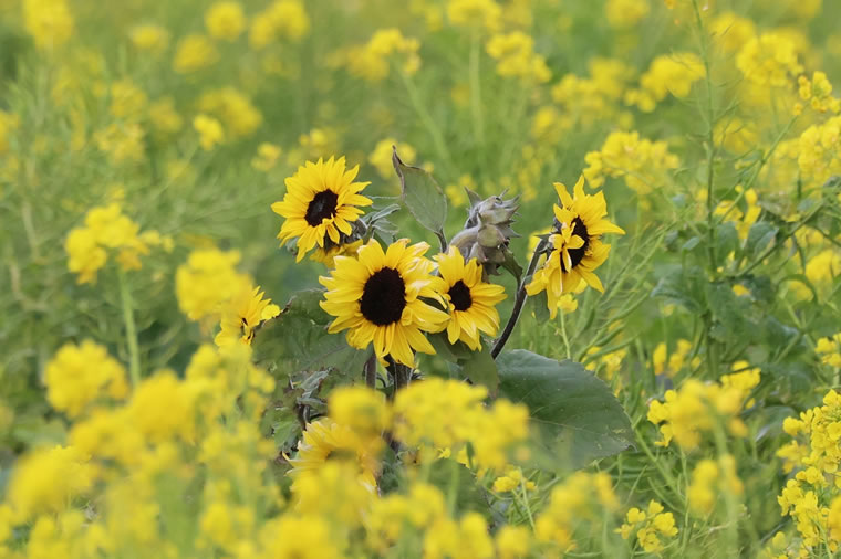 菜の花に囲まれてヒマワリも咲いていました。(2月上旬撮影)