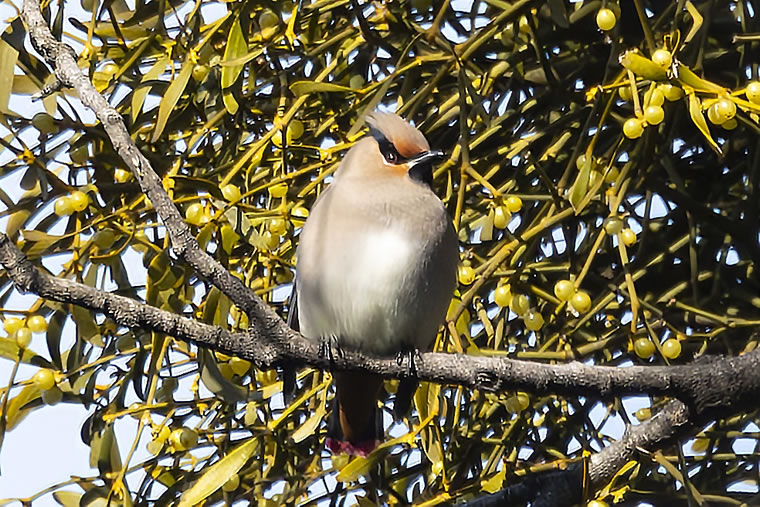 植物食傾向の強い雑食で、花、樹液、昆虫類等も食べますが、この公園では、ヤドリギの黄色い実を食べます。