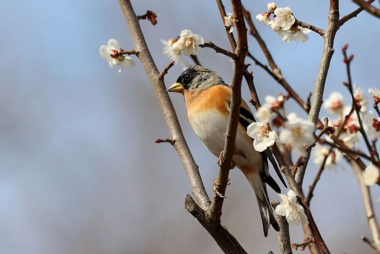 |WILD BIRDS PHOTO GALLERY(野鳥ギャラリー)|VOL.259 初撮り!梅にアトリ|