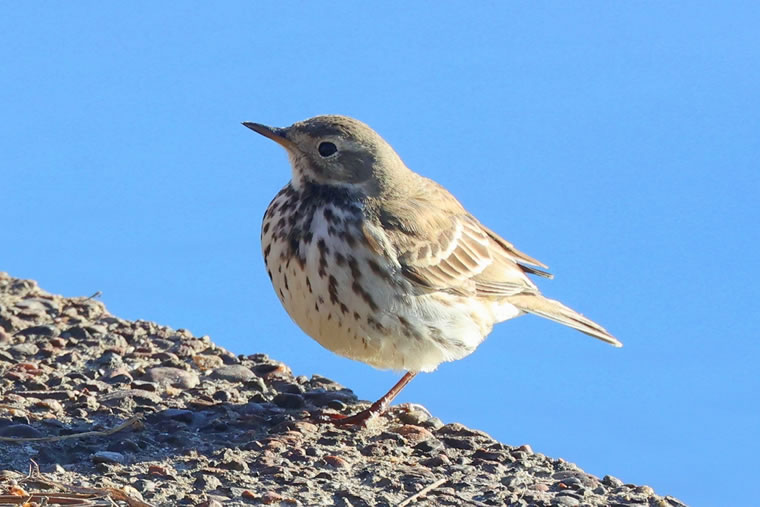 背から翼の上面は灰褐色、体の下面は淡い黄褐色。胸、脇に縦斑があります。
