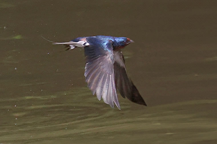 池の水面スレスレにツバメが飛んできて、水面にタッチ&ゴーを繰り返していました。