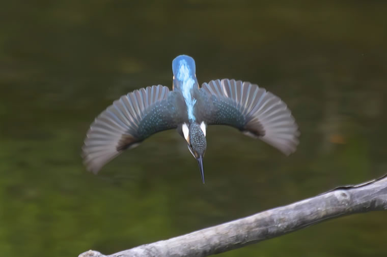 水中に飛び込む前の、羽根を広げた瞬間です。