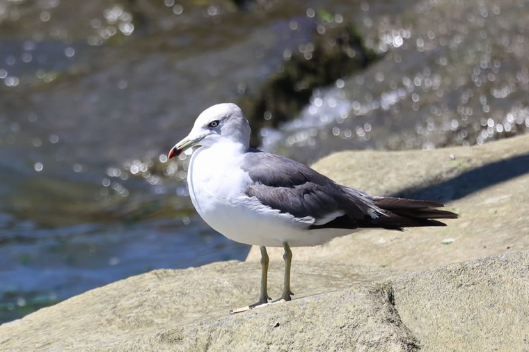 一方、ウミネコは年中、国内にいる留鳥です。 ウミネコのくちばしの先には、赤と黒の模様が入っているのが特徴です。