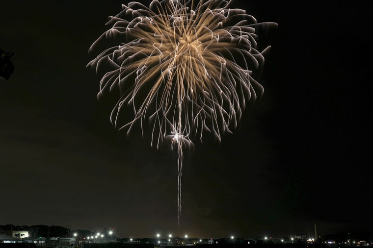 この花火は、他の花火より高く打ち上げられたので、上部が画角に納まりませんでした。 残念!!