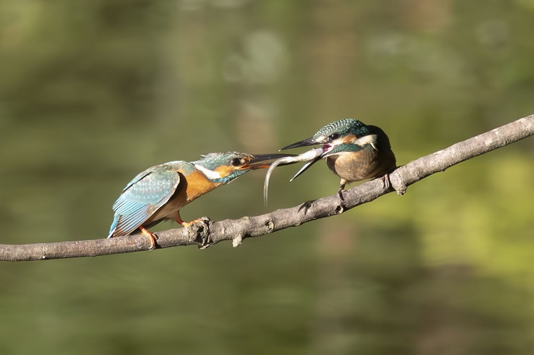 飲みこみやすいように、魚の頭を先にして幼鳥に差し出します。