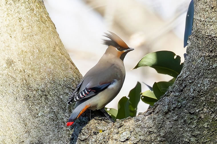 18cmほどの鳥で、しっぽの先端は赤い色(緋色)をしているので「ヒレンジャク(緋連雀)」の名前がついています。