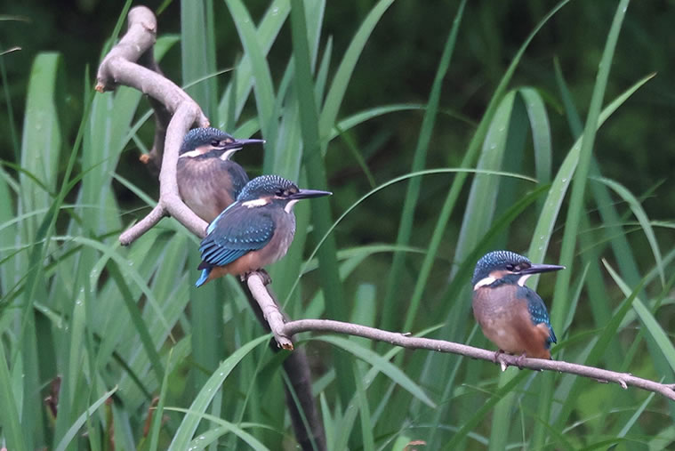 成鳥は綺麗な翡翠色の羽、鮮やかなオレンジ色のお腹ですが、幼鳥は全身が黒みがかっていて、成長するにつれ鮮やかな色になっていきます。