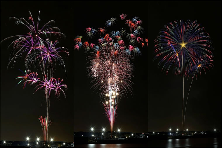 真ん中の写真は、この花火大会のフォトコンテストに応募して、優秀賞に入賞したものです。