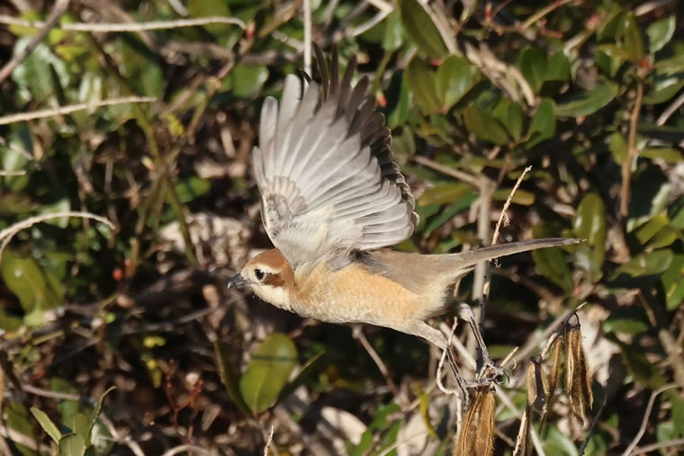 近所の公園で枝に留まっているのモズを見つけました(表紙)