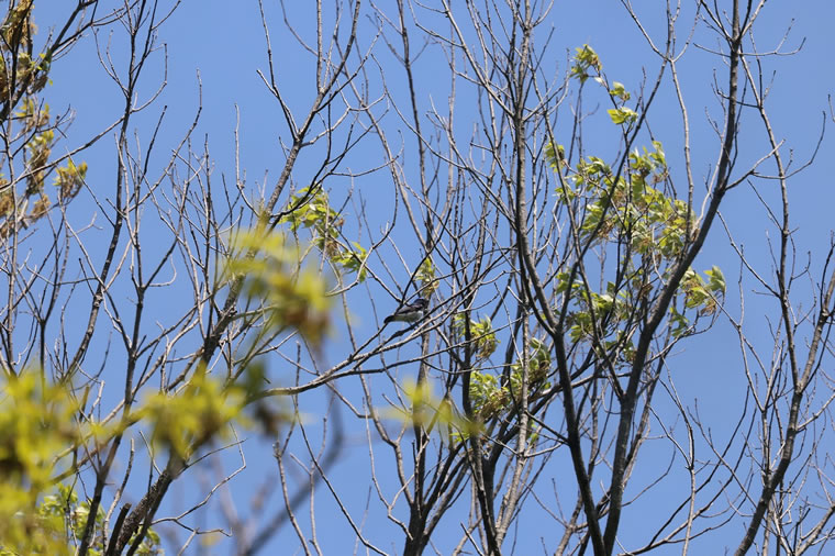 「オオルリが来ているよ!」との情報をもらい、4月中旬にプチ遠征。現地に到着すると、木の上から綺麗な鳴き声がします。