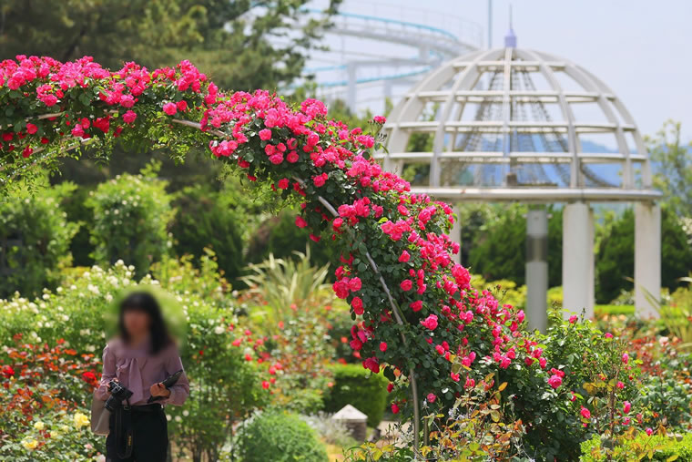 モデルさんのような方が薔薇のトンネルをくぐるシーンを撮らせていただきました。