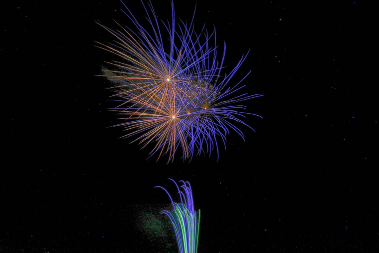 最終日の7/27(日)の20:00からは、約10分間の短い時間ですが花火が打ち上げられます。