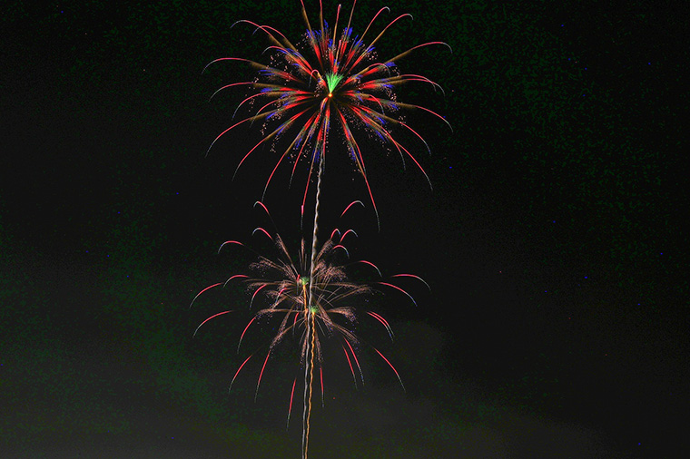この時は23秒の露出時間でも、2つの花火が開いているだけでした。
