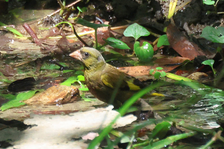 コムクドリに続いて、カワラヒワが水浴びにきました。