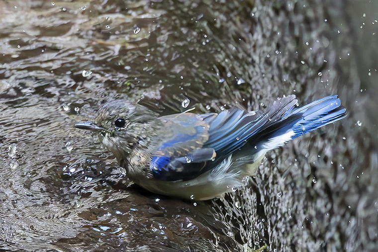 オスの幼鳥は、体の一部が鮮やかな青色ですが、成長するにつれて、全身が濃い青色に変わっていきます。
