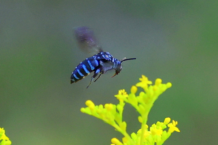オミナエシの黄色い花とブルービーのコントラストが綺麗です。