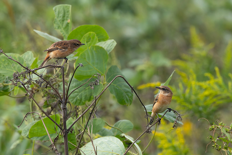 1羽のノビタキを撮っていると、もう1羽が飛んできました。
