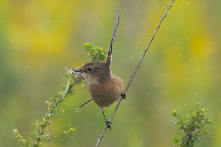 黄色のセイタカアワダチソウを背景に、ノビタキが可愛いポーズをいろいろ見せてくれました。