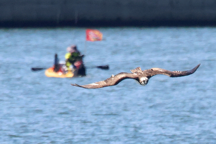 ミサゴは獲物の魚を見つけると、人がいても気にせず、水面に急降下してきます。