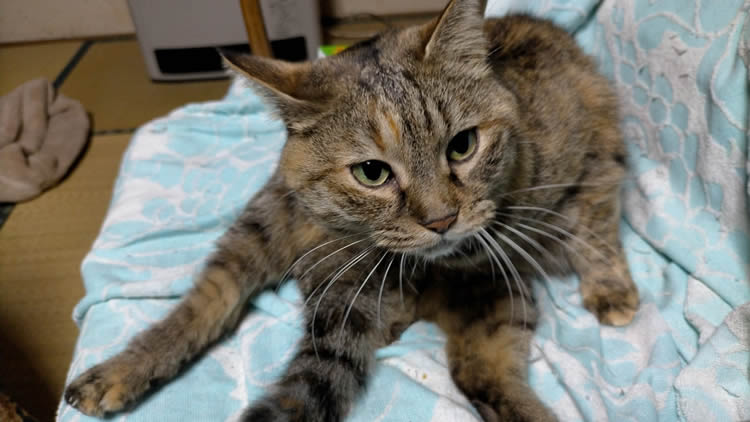 おかげ様で食欲旺盛でマルマルしてます! 大好物は「ちゅ~る」のチキンです!