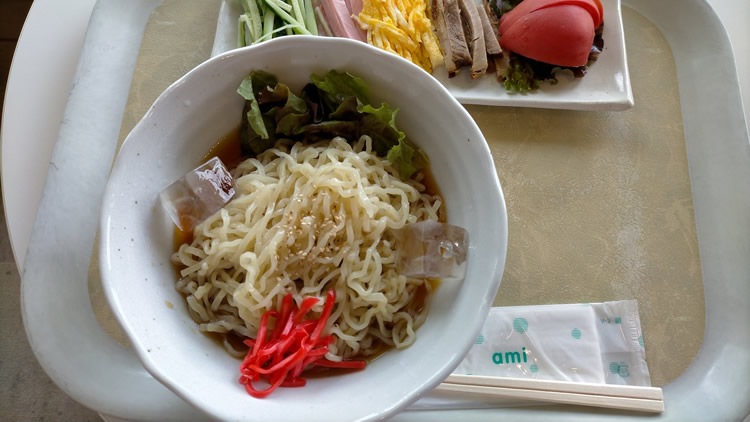 研修中日(なかび)の昼食。 今年最初の冷やし中華は「アピオスペース内ほっとほっと」。