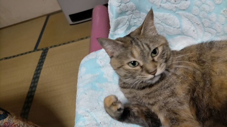 【今日の隊長】 昨日から雨で、アタシは家の中で退屈してました。 お父さんは昨日はバタバタ仕事してたけど、今日はなんだか少しノンビリしています。 なので、チョイと手(前足)でお父さんを引っかけて遊んでました。 でもお父さんに撫でられると、お腹を上にして寝てしまうんだな。これが。 しあわせです。