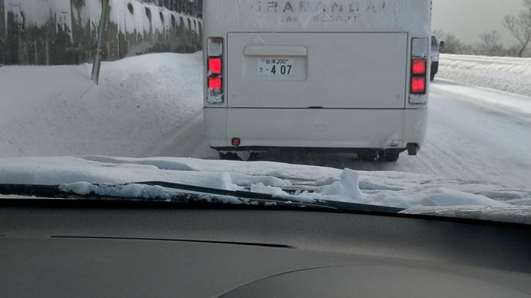 【渋滞】 49線、志田浜先から進まない。土湯を狙ったが地吹雪地獄で断念。 (追伸) やっと福島にたどり着きましたが、49線は反対車線(会津若松に向かう)の方が無茶苦茶です。鞍手茶屋の前の辺りで大型トレーナーが動けなくなって、そこから延々と磐梯熱海まで渋滞でした。 万一、向かう方は御注意ください。