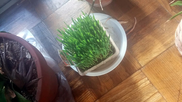2016.2.6 【ケア】 そろそろニャンコの冬毛が抜ける季節なんで、猫草買って来ました。 隊長を抱えて連れて行きましたが、鼻をツンツンしたくらいで、「こんなもんより、マグロくれ~」みたいな顔してました。 親の心、娘に通じず。