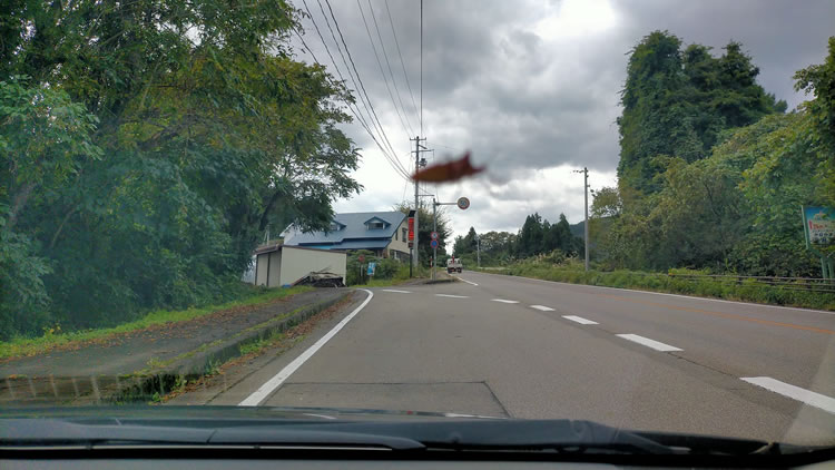 【未確認飛行物体?】 会津の山間に入って行くと、行手前方に何やら巨大な飛行物!?