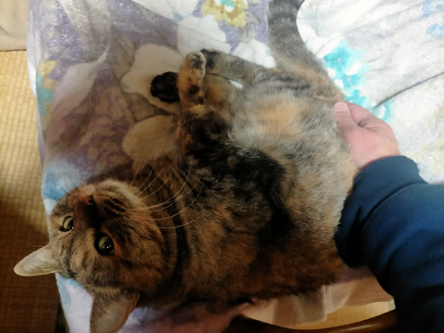 あ、その前に お父さんを引っ掻いて遊ぼう。