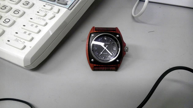 【アレルギー】 年齢のせいか、金属アレルギーが昨年夏から出て、およそ金属を見につけられなくなってしまいました。 特に困ったのが「腕時計」。やはり時刻を確認するのに左腕を見るのが手慣れてしまっているし、スマホはデカいし。 知人からオール木製の腕時計(写真)を頂いて解決(感謝m(__)m)。